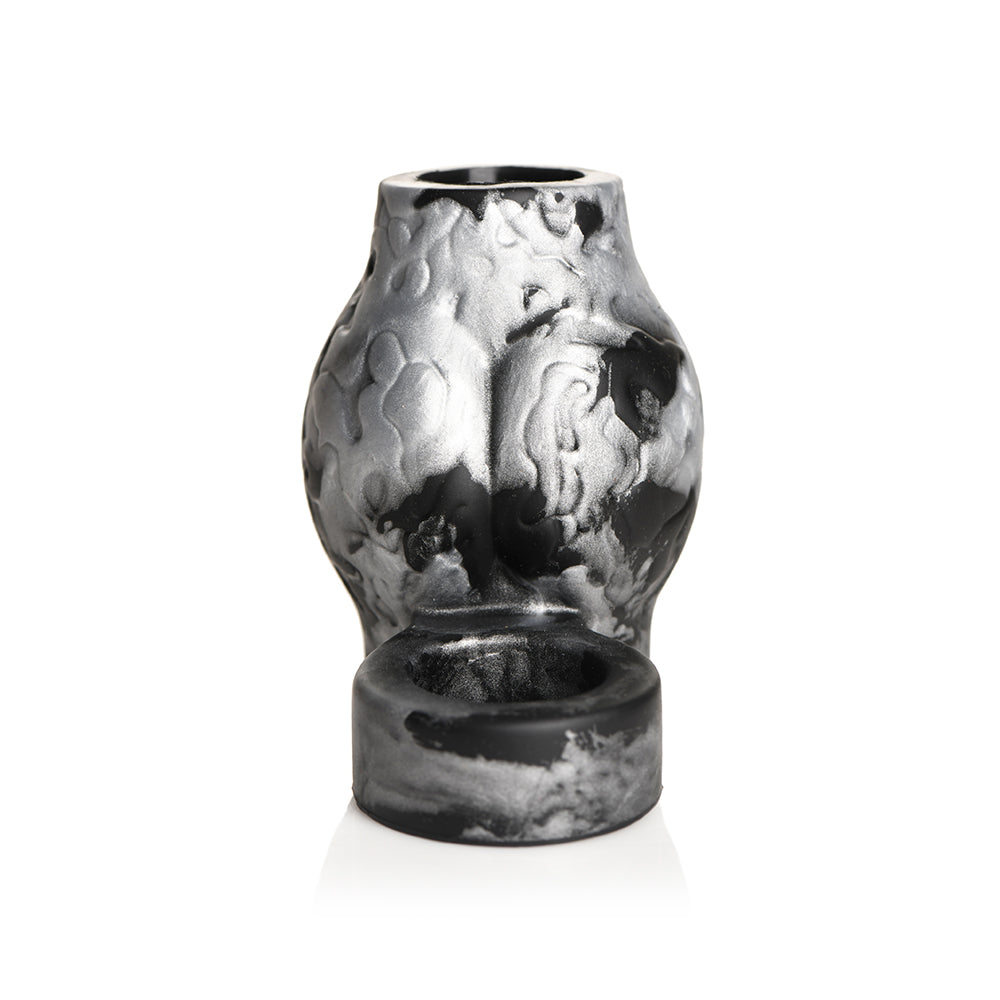 Become the silver wolf of your partner”s dreams or nightmares with this Night Prowler sleeve and ball stretcher! It fits over your shaft, adding pressure to your rod, while also wrapping around your balls and stretching them! Made out of premium, phthalate-free, body-safe silicone, it is best used only with water-based lubricants only. Enhance your playtime and the sensations by giving yourself a rod that gets thicker by adding these two bulging, wolf-knots at the base! It stays in place due to the ball stretcher wrapped around your family jewels, and essentially tugs your balls every time your partner goes deep! Enjoy adding this to your kinky cosplay and fantasy roleplay while indulging with your partner! After use, wash it with warm water and mild soap, then rinse it off and spray it with a toy cleaner. Pat dry and store in a cool, dark place.You open the package, and with pleasant surprise, you see the genuine, silver wolf-sheath you”ve been waiting for! Your partner has been aching for a different experience, and you can”t wait to satisfy them! You meet up with them, add some lube, and slide it on. At first, it feels normal, a little snug, but the squeeze feels good. Then the change starts… your blood gets hot, your nails get longer, your canines grow, and you look at your shaft and it”s bulging and silver! You glance at the package: “Made with real lycanthrope substance; do not wear during a full moon”. You look out the window and see a huge, yellow moon hanging in the sky. Oh no, you really shouldn”t read the instructions! You have one last moment of clarity before you pounce on your partner and give them a night of rough, primal sex! Fantasy Sheath: This metallic silver and black sheath is inspired by the Night Prowler werewolf! Ball Stretching: Give your balls a tug that stretches them, enhances sensation, and increases endurance! Adds Girth!: Add girth to that rod of yours and give your partner a thick shaft and fat knot to ride! Premium Silicone: Made out of premium, phthalate-free, body-safe silicone. Measurements:Overall length: 3.5 inchesBall ring: 1.2 inches inner diameterCock ring: 1.1 inches inner diameter, 2.6 inches outer diameter (adds 1.6 inches in girth)