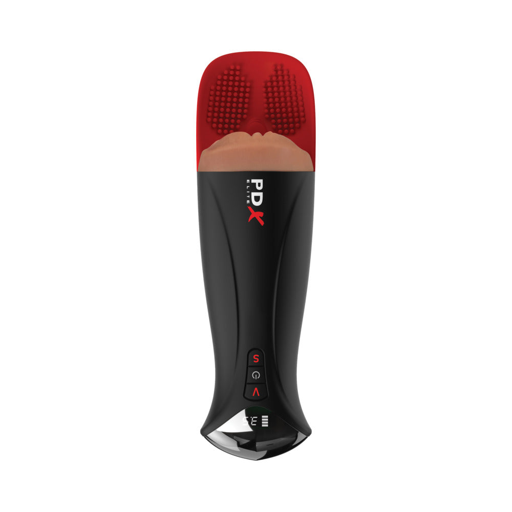 You asked for it and we delivered! The PDX ELITE FUCK-O-Matic PRO XL elevates masturbation with powerful suction-action for the ultimate MEGA-STROKER experience! It”s a perfect storm of sensation for heightened solo sex sessions that can be customized to your personal moods! Get ready for explosive hands-free vibration surrounding your balls with rows and rows of soft pleasure nubs. Your ultimate XL masturbation experience is ready when you are! Features: INTERMITTENT SUCTION TECHNOLOGY: The ultra-strong motor provides 5 deep, pleasing suction modes. Intermittent suction automatically pulls your penis in and out for suction stroking pleasures beyond your wildest dreams! PERSONALIZE YOUR POWER: Enjoy 5 modes of vibration (V) & 5 modes of suction (S)! Strategically positioned to maximize stimulation to your penis, the powerful vibrator will tease and please! Try all 5 modes of each and customize your pleasure! EASY-TO-READ LED DISPLAY: Large, easy-to-read numbers on the LED display make it quick and easy for you to identify and remember your favorite modes. Dial them in at the drop of a dime for an epic stroking session every time! The left digit indicates suction modes (1-5), while the right digit indicates vibration modes (1-5). USB MAGNETIC RECHARGING: Charge product using included magnetic charging cord. Ultra-soft sleeve Travel Lock Specifications Materials: ABS, TPE, and Silicone Warranty Period: 1-Year Limited Warranty Total Length: 13.75 in. (34.9 cm) Total Width: 3.9 in. (9.9 cm) Penetrable Length: 6.5 in. (16.5 cm) Inner Diameter: 2.0 in. (over 5.1 cm) Special Features: Multi-Speed, Modes, Realistic, Suction, Vibrates Battery Type: Rechargeable Lithium-Ion Run Time: 40 mins. Charge Time: 160 mins. Charger Type: Magnetic/USB-A Note: Product ships with Travel Lock on for discretion. It will automatically unlock upon charging product. Press top 2 buttons for 5 seconds to lock/unlock.