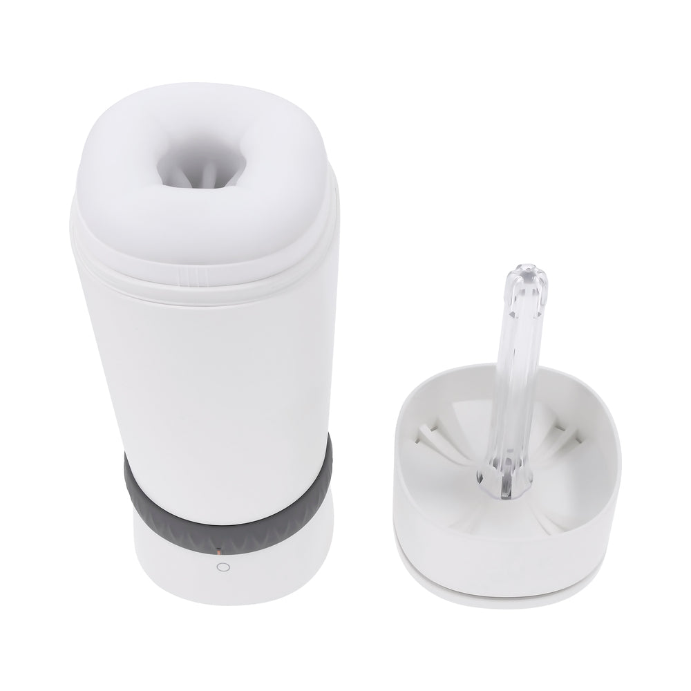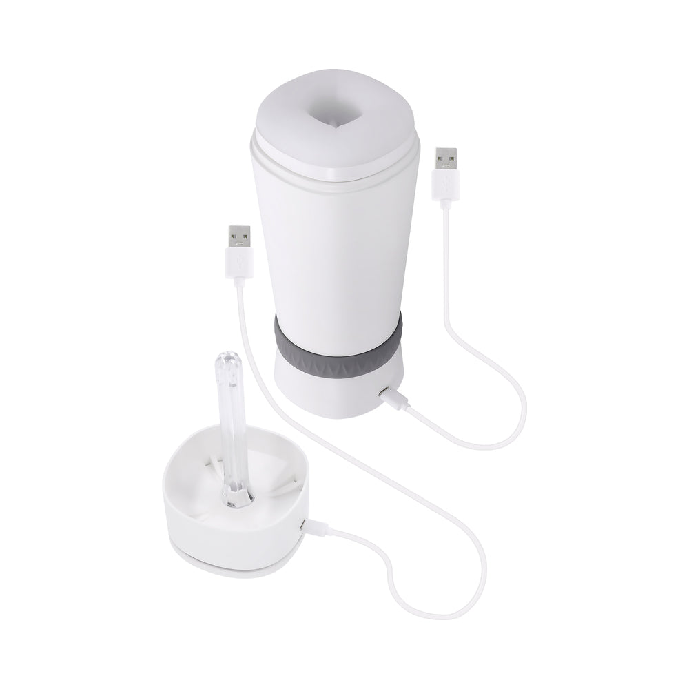 Shake it up baby… Twist & Stroke! Indulge yourself with deeply satisfying penetration into a soft and stretchy textured channel that warms and vibrates as it strokes. Amp up your play with 6 speeds and rhythms powered by a state-of-the-art motor. The twist off the protective cap doubles as a self-drying UV cleaner, which locks back into place when you”re ready to work it on out again! Play with me (key feature): tightening, heating stroker, UV cleaning Vibration: 6 speeds and rhythms Material: Body-safe TPE, ABS and Silicone, Phthalate and Latex-free Waterproof and Submersible: Yes Warranty: Five years Rechargeable: USB cable included Size Specs Height: 8.5in., Depth: 3.31in., Width: 3.06in. Insertable Length: 5.15in., Diameter 1.22in.