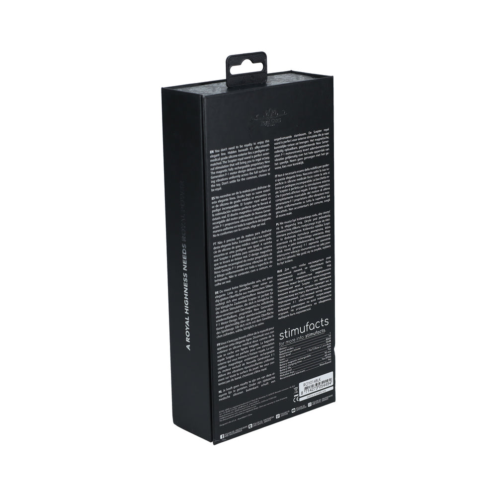 You don”t need to be royalty to enjoy this elegant line. Hidden beneath it”s silky-smooth medical grade silicone exterior lies a pedigree unmatched. The Scepter royal wand is perfect external stimulation that will bring you to regal ectasy. The magnetic fully rechargeable proprietary New Generation F-1 motor design delivers mind blowing vibrations uniformly across the full surface of the toy. Don”t settle for the common, choose to be royal. Product dimensions: 7.05in. x 1.54in. Product diameter: 1.57in. Quantity motors: 1 Rotations per minute: 8000 RPM Speed modes: 10 Multi speed: Yes Rechargeable: Yes Rechargeable time: 90 min Recharged battery lifetime: 60 min Waterproof: Yes (IPX6) Phthalate free: Yes Materials: Silicone, ABS