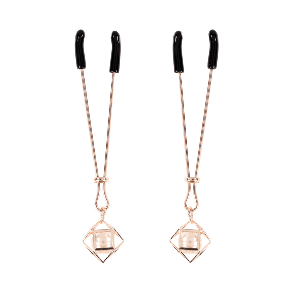 Push all your domft.s buttons for the perfect in.punishment.in. The adjustable Brat Pearl Nipple Clips offer varied sensations ranging from soft squeezes to pinching pleasures. Adorn your nipples with these beautiful rose gold clips dripping with faux pearl and get ready to turn up the heat.Features & Benefits Rubber-tipped nipple clamps with tension adjustments Pearl accents for tugging and pulling Materials: 60% Iron, 20% ABS Plastic, 20% Phthalate free PVC